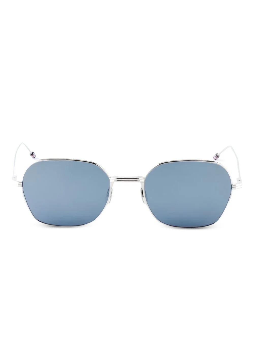 geometric-frame sunglasses Highlights - Silver-tone - Geometric frame - Tinted lenses - Nose pads - Straight arms - Curved tips - These glasses come with a protective case. Imported Composition Metal 100%