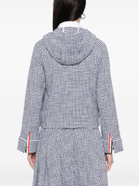 gingham-check tweed jacket Highlights - Navy blue - Front button and zip fastening - Classic hood - Long sleeves - Buttoned cuffs Made in Italy Composition Cotton 100% SIZE & FIT Model measurements Height 5 ft 9 in(1.76 m) Bust/Chest 32.28 in(82 cm) Hips 35.43 in(90 cm) Waist 25.19 in(64 cm) FittingInformation Designed for a relaxed fit, this piece allows for comfort and movement when worn