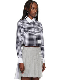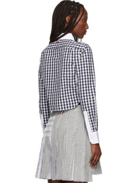 Cotton poplin shirt. · Check pattern throughout · Peter Pan collar · Button closure · Patch pocket at chest · Logo patch at front · Cropped shirttail hem · Buttoned barrel cuffs · Tricolor grosgrain flag at back collar · Locker loop at back yoke Supplier color: Black/White 100% cotton. Made in Italy 252381F109008