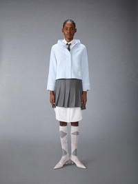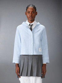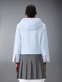 A playful gingham jacket crafted from breathable cotton tweed inspired by the charm of country life. It’s the perfect blend of Thom Browne sophistication and rustic simplicity, featuring a hood, self-covered buttons, and a hidden zipper. Throw it on over your favorite button-down as soon as the weather drops. Front snap button closure with hidden zipper Name tag applique Buttoned cuffs with signature striped grosgrain trim Model is 5'10" (178 cm), wearing size 40 100% Cotton Made in Italy FJT392A-J0222-480