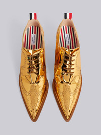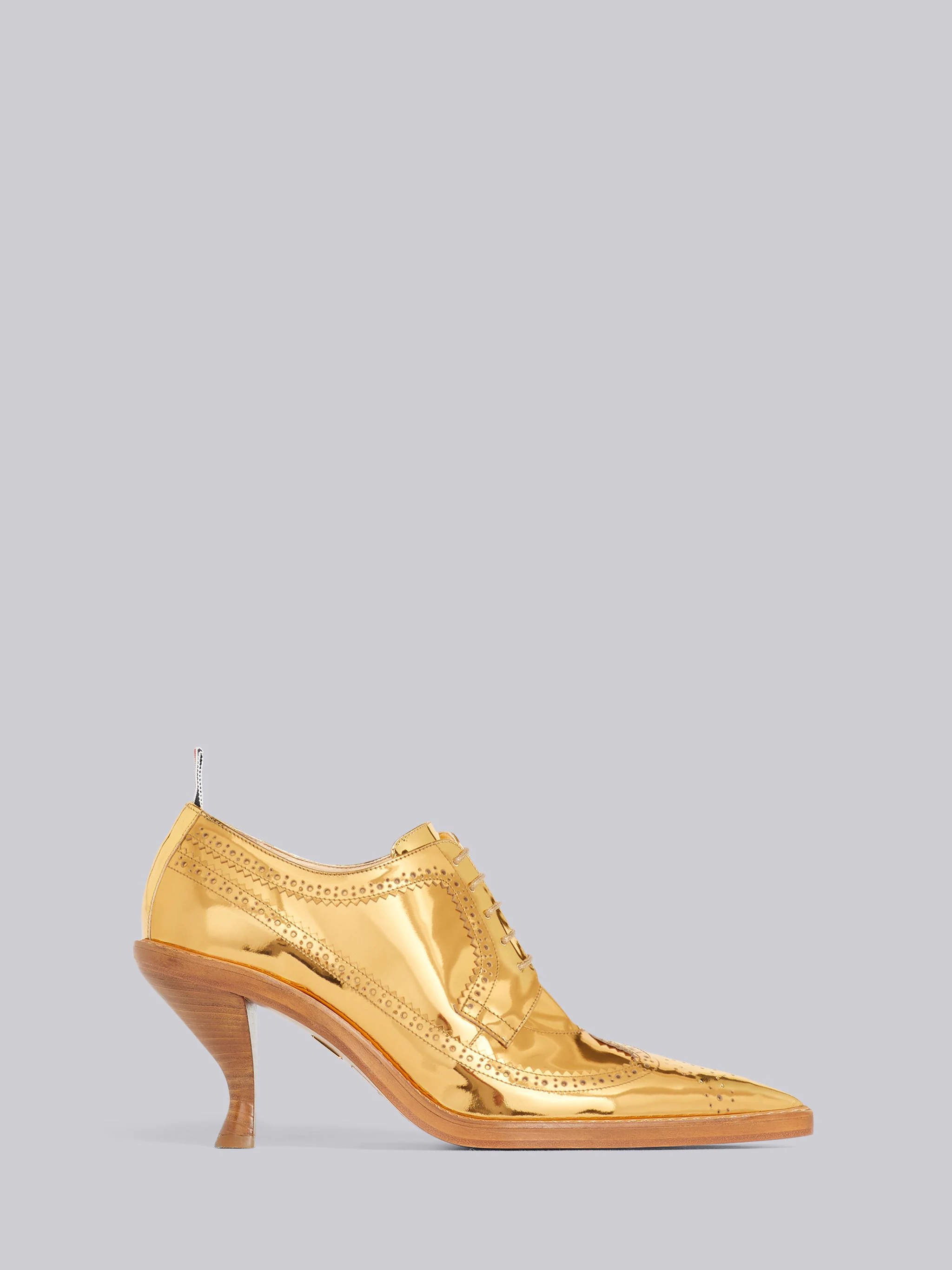 Gold Specchio Calf Leather 75mm Curved Heel Longwing Brogue