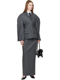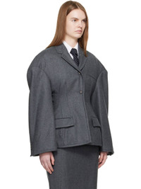 Wool melton blazer. · Notched lapel · Button closure · Flap pockets at front · Padded shoulders · Surgeon's cuffs · Tricolor grosgrain flag at back collar · Full silk voile lining Supplier color: Dark grey Body: 100% wool. Lining: 100% silk. Made in Italy 252381F057013