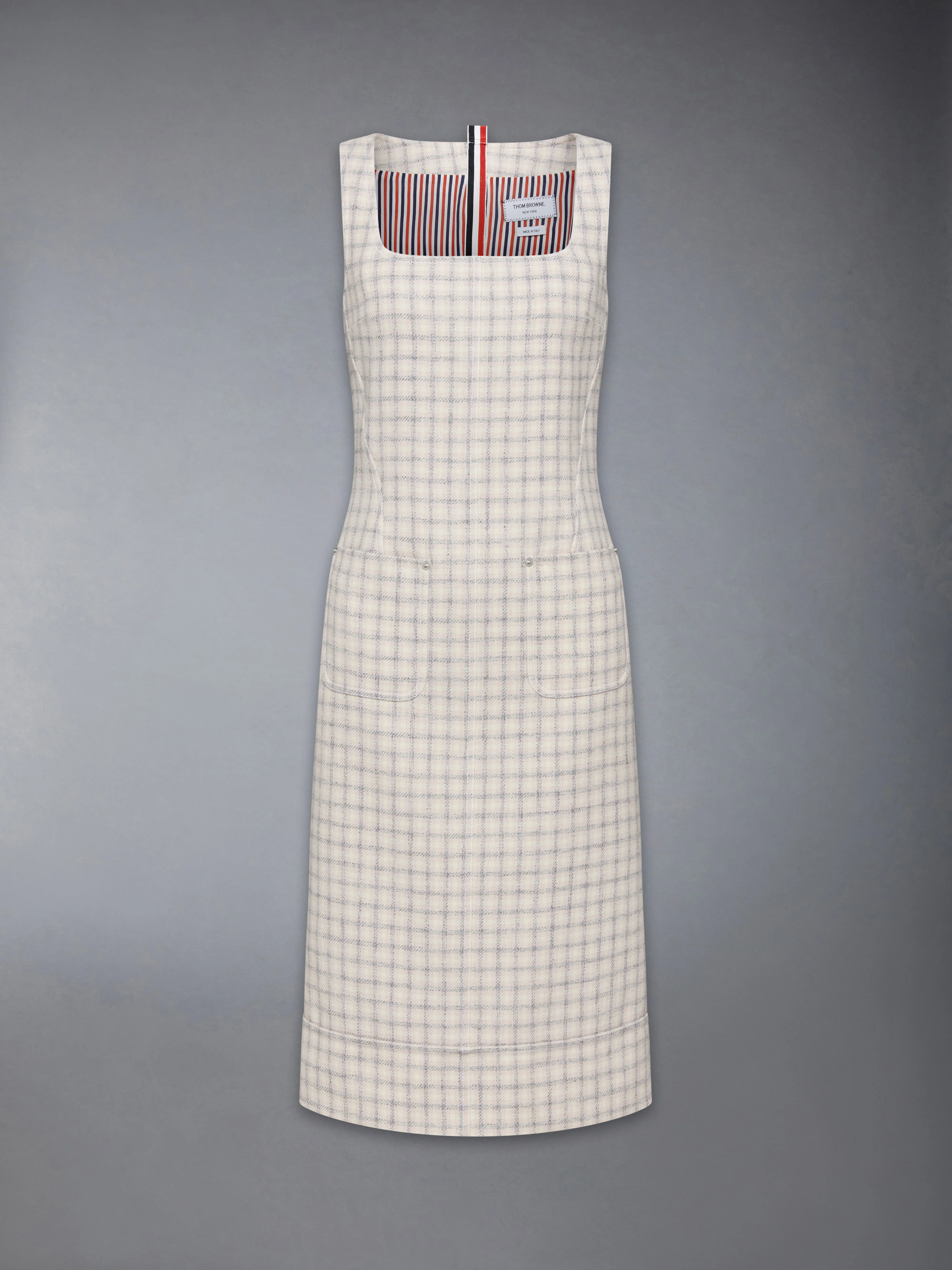 GUNCLUB CHECK HUNTING TWEED SQUARE NECK COLUMN DRESS