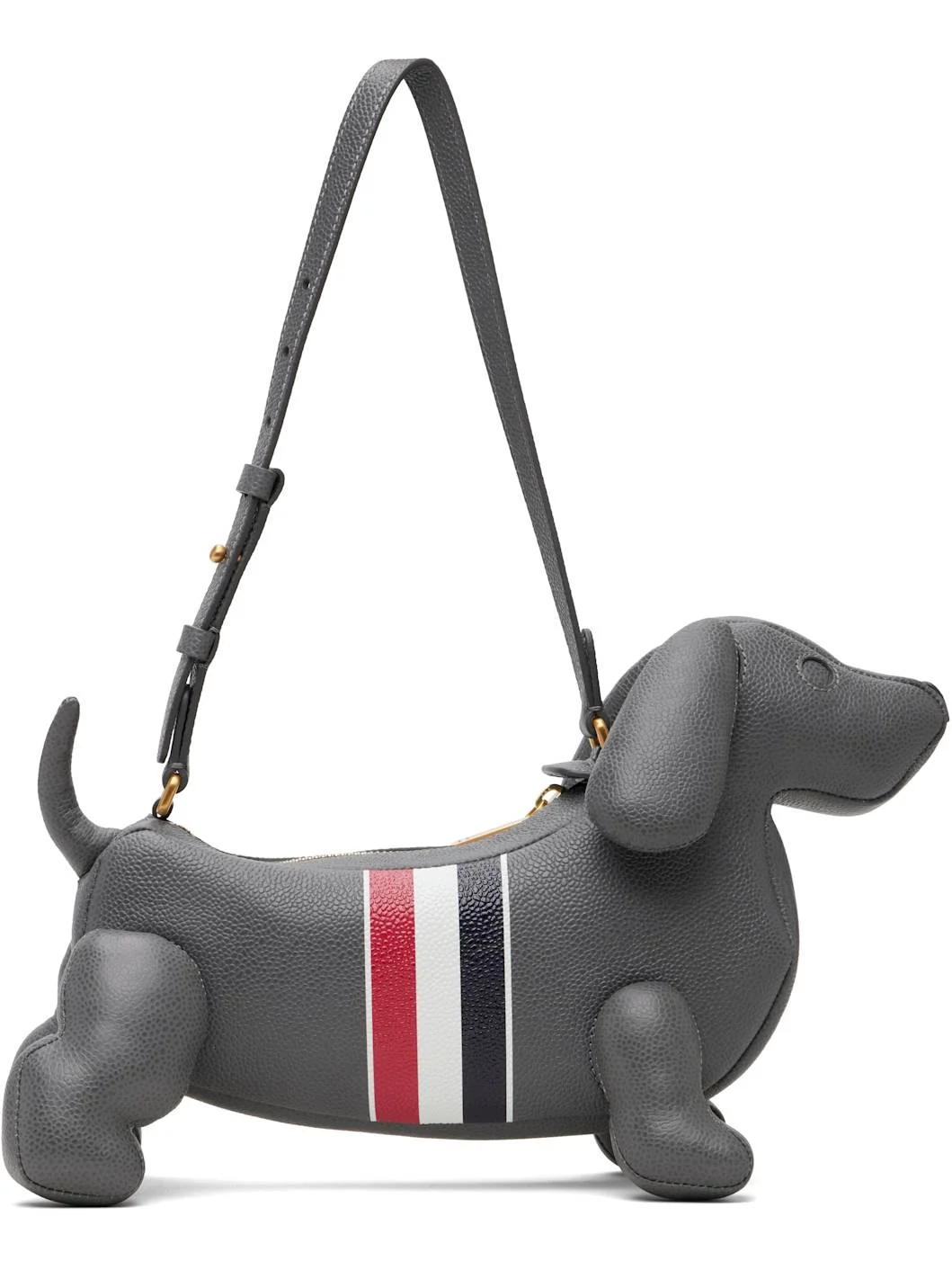 Sculptural padded pebble-grained calfskin shoulder bag. · Adjustable shoulder strap · Signature tricolor grosgrain flag at top · Signature tricolor stripes at face and back face · Zip closure · Card slot at interior · Tricolor faille lining · Logo-engraved gold-tone hardware · H8.25" x W10.5" x D3" Supplier color: Dark Grey Body: 100% leather. Lining: 100% polyester. Made in Italy 261381F048004