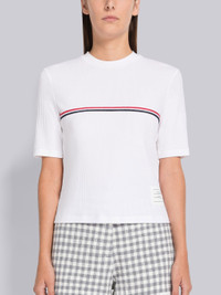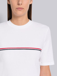 DETAILS & FIT Crew neck tee in white high twist cotton rib with stripe detail through chest. Name tag applique above hem. Signature striped grosgrain loop tab at back of neck. Made in Italy 100% Cotton FJS143AJ0066100