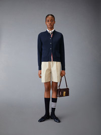 DETAILS & FIT A blend of timeless elegance and innovative craftsmanship, these sophisticated shorts will serve as a staple in your spring wardrobe for years to come. Tab front closure Button-fastening back welt pockets Signature striped grosgrain loop tab Model is 5'10" (178 cm), wearing size 40 65% Polyester, 35% Cotton Made in Italy FTC501U-04502-250
