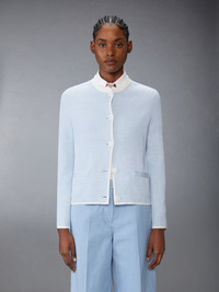 Inspired by the charm of classic American country life and the beauty of simple joys, this linen cotton cardigan features discreet 4-bar detailing on the left sleeve and two functional pockets. Pair it with our Denim Unlined Bermuda Shorts. Front button closure 4-bar detailing 2 Front slip pockets Signature striped grosgrain loop tab Model is 5'10" (178 cm), wearing size 40 68% Linen, 32% Cotton Made in Italy FKJ115B-Y6011-480