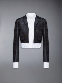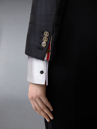 DETAILS & FIT This sport coat pays homage to Edgar Allan Poe's "The Raven," in which a distraught lover encounters a mysterious raven at his windowsill. With subtle embroidery and intricate details, this garment invites closer examination, revealing unexpected juxtapositions that defy conventional expectations, much like the work in Poe's literary legacy. Comes complete with a Quilted Oxford Shirt. Front button closure 2 Flap pockets Single chest pocket Buttoned cuffs with signature striped grosgrain trim Interior pocket with name tag Tricolor stripe lining Signature striped grosgrain loop tab Model is 5'10" (178 cm), wearing size 40 80% Polyester, 20% Silk Combo1: 100% Cotton Lining: 100% Cupro Made in Italy FBR036C-F0766-001