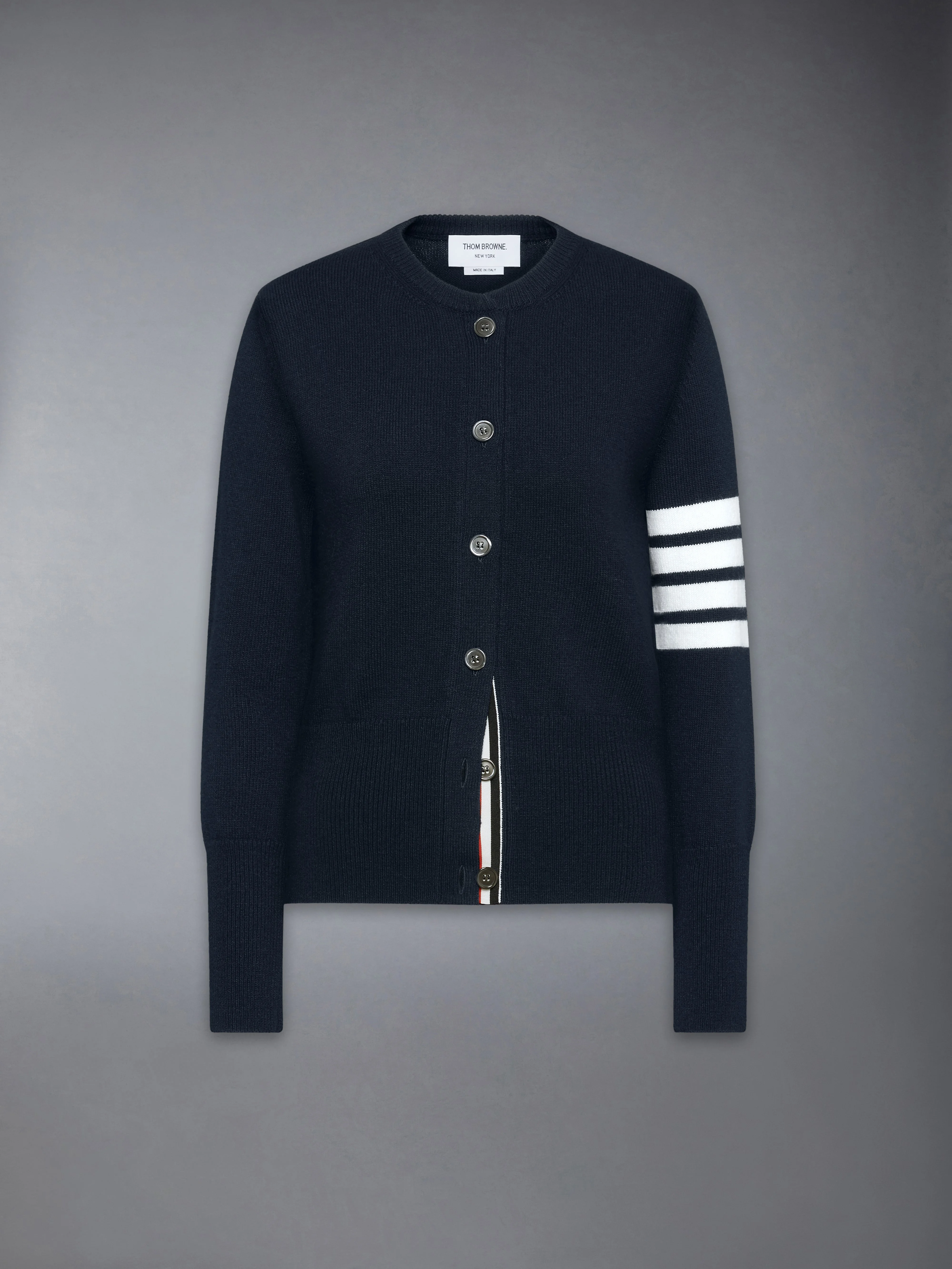 In celebration of the Year of the Horse, this refined cardigan is knit in soft wool and defined by a horse intarsia at the back, symbolizing discipline and forward motion. Engineered with precision and finished with signature details, it reflects the spirit of renewal through considered craftsmanship. Crew-neckline Front button closure with RWB grosgrain placket Ribbed neckline Ribbed buttoned cuffs with RWB grosgrain trim Buttoned side vents with RWB grosgrain trim Ribbed hem 4-bar detailing Signature striped grosgrain loop tab Classic fit Model is 5'10" (178 cm), wearing size 40 100% Virgin Wool Made in Italy FKC688A-Y1029-415