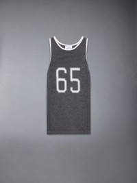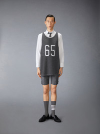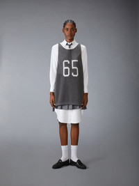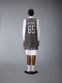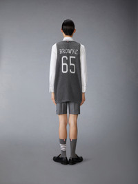 An elevated take on the classic jersey, this sporty number pays homage to heritage, craftsmanship, and athletics. The bold 65, a nod to Thom’s birth year, is rendered in an iconic collegiate font—famously used at Notre Dame. Crafted from ultra-soft mesh cashmere, it effortlessly blends tradition and modern luxury. Signature striped grosgrain loop tab Model is 6'1" (185cm), wearing size 1 100% Cotton Made in Italy MKA561A-Y2001-035