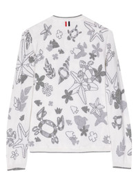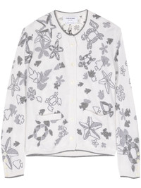 intarsia-knit cashmere cardigan Highlights - White/grey - Cashmere - Knitted construction - Patterned intarsia knit - Rwb stripe - Crew neck - Front button fastening - Long sleeves - Two front welt pockets - Straight hem Made in United Kingdom Composition Lining: Silk 100% Outer: Cashmere 100%