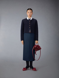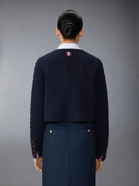 DETAILS & FIT A cardigan that embodies the season, featuring crisp tailoring and a classic cable stitch. This piece will serve as a staple in your polished fall/winter wardrobe for years to come. Front button closure with striped grosgrain placket Buttoned cuffs with signature striped grosgrain trim Signature striped grosgrain loop tab Model is 5'10" (178 cm), wearing size 40 100% Wool Made in IRELAND FKC609A-Y1048-415