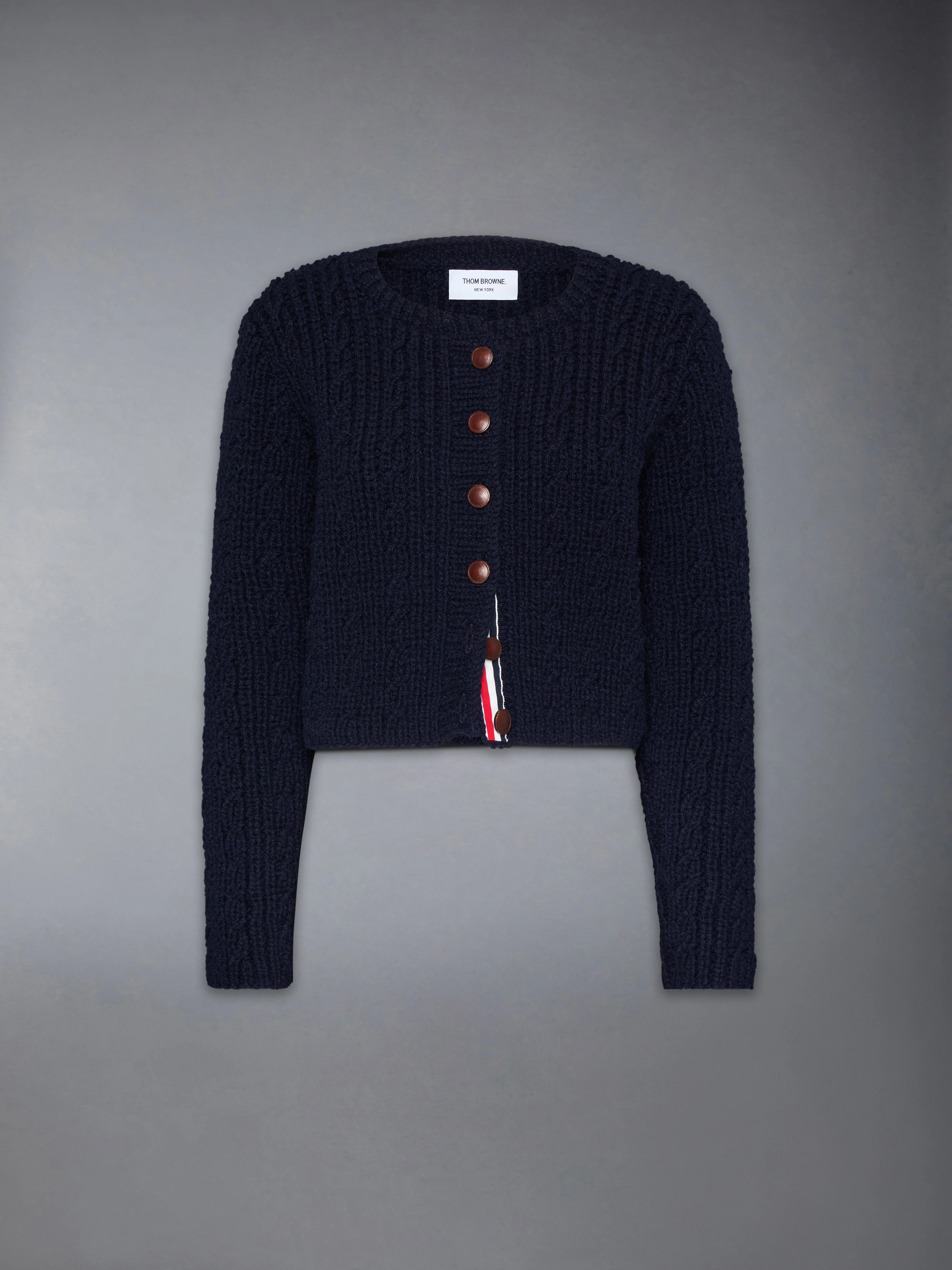 Irish Wool Handknit Half Cardigan Cable Stitch Short Crew Neck Cardigan