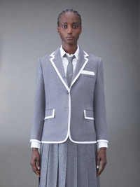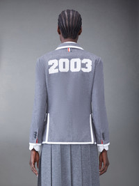 DETAILS & FIT Classic sport coat in grey jacket weight cashmere with white grosgrain tipping and embroidered "2003" detail at back in white wool thread. 3-button front closure, notched lapels, 2 flap front pockets, single chest pocket. Buttoned cuffs with signature striped grosgrain trim. Double vented back hem. Striped lining with interior pocket and name tag. Signature striped grosgrain loop tab at back of neck. Classic - Fit 1. Model is 5'10" (178 cm), wearing size 40 100% Cashmere Combo 1: 50% Wool, 50% Acrylic Lining: 100% Cupro Made in Italy FBC637E-E0705-035