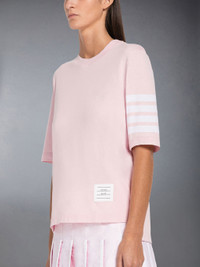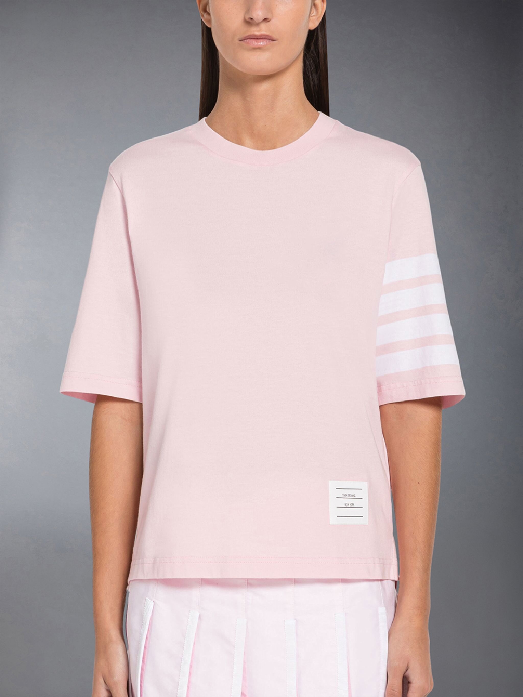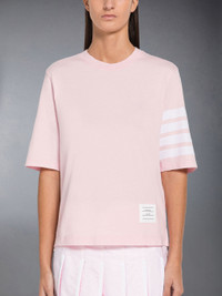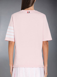 DETAILS & FIT Sporty leisurewear for comfortable activities. Short sleeve tee in jersey with engineered 4-bar stripe detail. Crew neckline Name tag above hem Dropped back with signature striped grosgrain trim Signature striped grosgrain loop tab at back of neck Model is 5'10" (178 cm), wearing size 40 100% Cotton Made in Italy FJS102G-07862-680