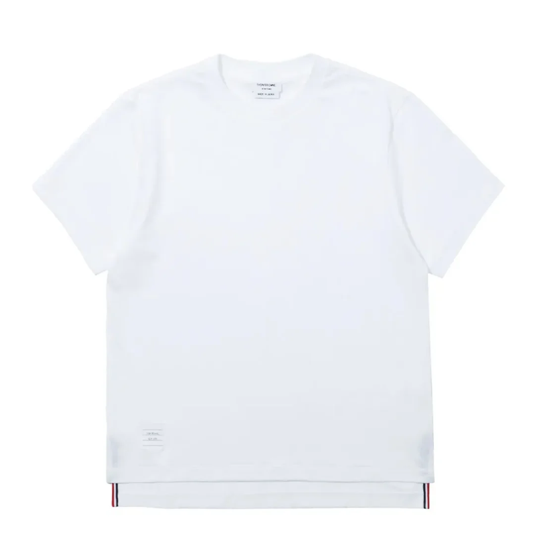 Thom Browne Jersey Relaxed Side Slit Tee Women A silhouette that has stood the test of time, our Jersey Relaxed Side Slit Tee is enriched with a breathable side slit and Thom Browne emblems throughout.