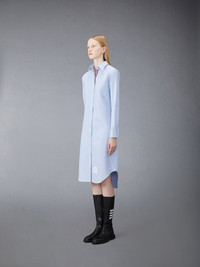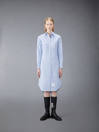 DETAILS & FIT Our Oxford Grosgrain Placket Knee length Point Collar Shirtdress. Crafted from the finest fabric, wear this silhouette alone as an everyday staple or as a base layer for suiting. Front button closure with striped grosgrain placket Point collar Barrel cuffs Single chest pocket Name tag appliqué above hem Seamed back yoke with locker loop Model is 5' 10" (178cm), wearing size 40 100% Cotton Made in Italy FDS001E-F0313-480
