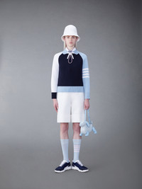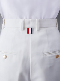 Impeccable craftsmanship, fine fabric, and distinctive Thom Browne emblems make these dress shorts an essential garment for your seasonal wardrobe. Pair them with any of our spring sweaters. Tab front closure Slip side pockets Button-fastening back welt pockets Signature striped grosgrain loop tab Model is 5'10" (178 cm), wearing size 40 100% Cotton Made in Italy FTC452U-F0345-114