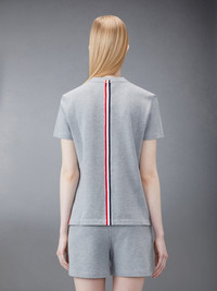 Light Grey Classic Cotton Pique Relaxed Fit Center Back Stripe Short Sleeve Tee