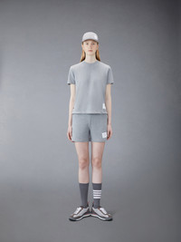 DETAILS & FIT A silhouette that has stood the test of time, our Classic Pique Stripe Tee is adorned with signature Thom Browne emblems throughout and tailored to perfection. Crew neckline Name tag applique above hem Center back stripe detail Buttoned side vents with signature striped grosgrain trim Signature striped grosgrain loop tab at back of neck Model is 5' 10" (178cm), wearing size 40 100% Cotton Made in Italy FJS013A-00050-055 - SLEEVE LENGTH: 5.0cm - Shoulder Width: 40.0cm - Length: 62.0cm - WAIST: 93.0cm - BUST: 93.0cm
