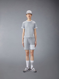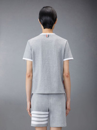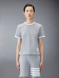 DETAILS & FIT A silhouette that has stood the test of time, our Jersey Ringer Tee is adorned with our signature nametag applique, and tailored to perfection. Light Grey Short Sleeve Ringer Tee Medium Weight Cotton Jersey Exterior Name Tag Dropped Bag Signature Grosgrain Loop Tab Model is 5'10" (178 cm), wearing size 40 100% Cotton Made in Japan FJS075A-00042-055