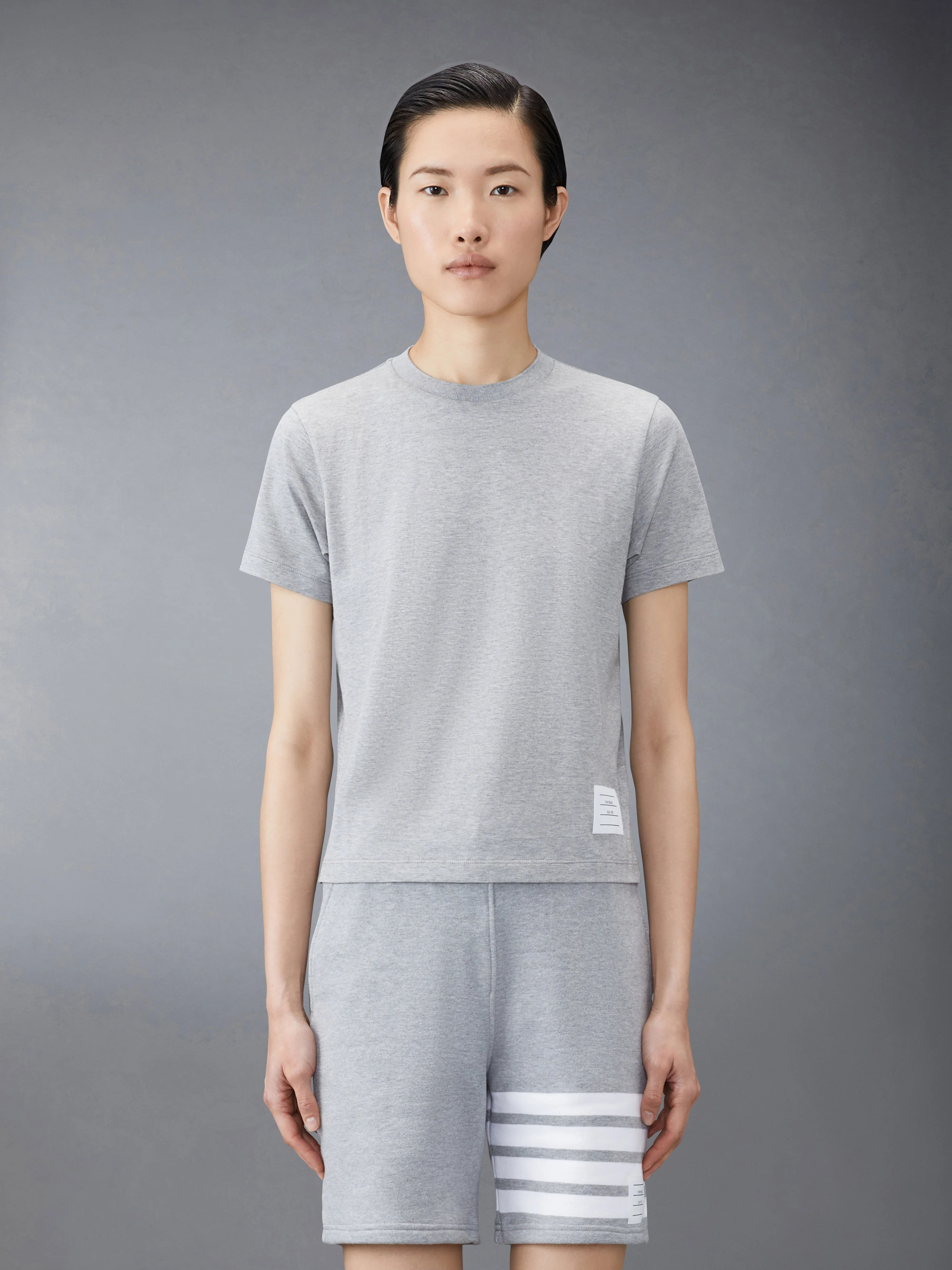 DETAILS & FIT A silhouette that has stood the test of time, our Jersey Relaxed Side Slit Tee is enriched with a breathable side slit and Thom Browne emblems throughout. Bound Crew neckline Name tag applique above hem Signature striped grosgrain loop tab at back of neck Model is 5' 10" (178cm), wearing size 40 100% Cotton Made in Japan FJS036A-05398-055