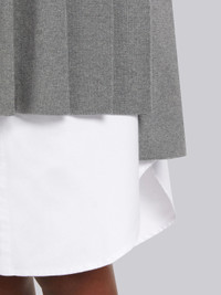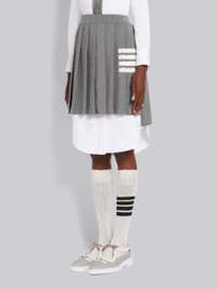 Light Grey Pique Stitch Cotton 4-Bar Dropped Back Pleated Mini Skirt