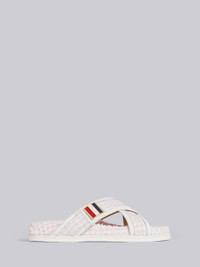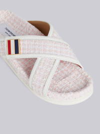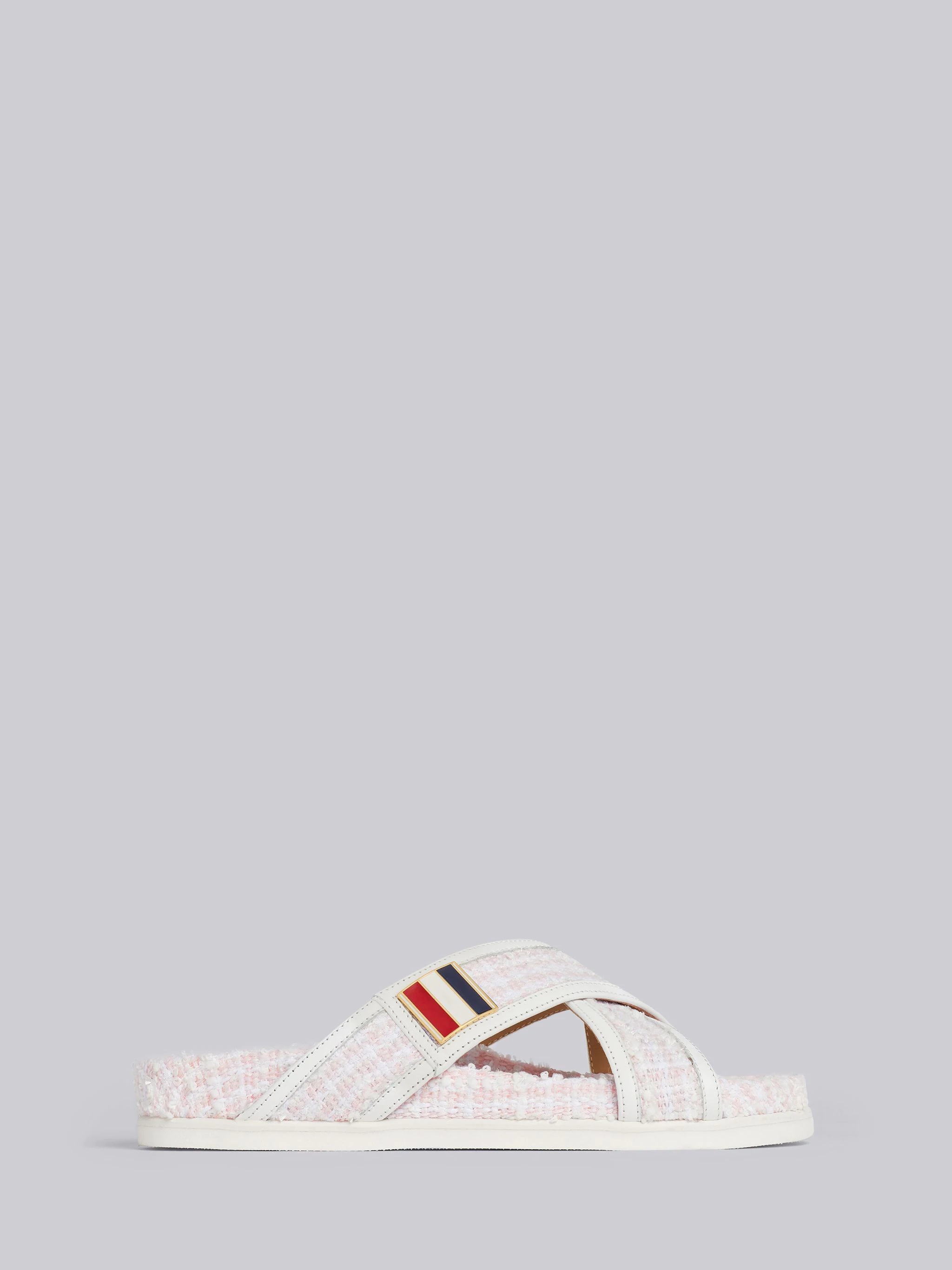 Light Pink Tweed Enamel Buckle Criss Cross Sandal