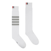 600069035WHT0OS / CP-FAS020D-01690/00/100 - Lightweight cotton construction - Signature 4-bar stripe pattern - Tricolor cuff detailing - Mid-calf height - Cushioned sole - Ribbed cuff for secure fit - Thom Browne logo tab Thom Browne Lightweight Cotton 4-Bar Mid Calf Socks deliver signature preppy sophistication with iconic brand recognition. Crafted from premium lightweight cotton in classic white with signature 4-bar stripes and tricolor detailing at the cuff. The mid-calf height and comfortable construction provide all-day wearability with unmistakable Thom Browne heritage styling.