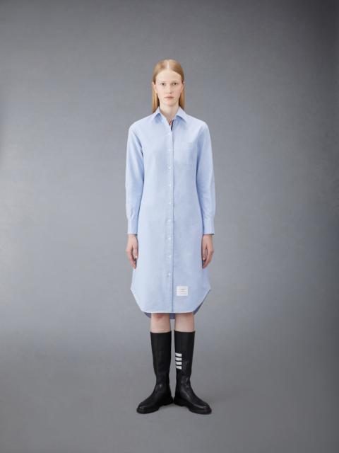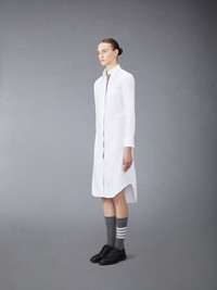 DETAILS & FIT Our Oxford Grosgrain Placket Knee length Point Collar Shirtdress. Crafted from the finest fabric, wear this silhouette alone as an everyday staple or as a base layer for suiting. Front button closure with striped grosgrain placket Point collar Barrel cuffs Single chest pocket Name tag appliqué above hem Seamed back yoke with locker loop Model is 5' 10" (178cm), wearing size 40 100% Cotton Made in Italy FDS001E-F0313-100