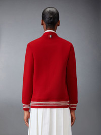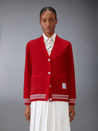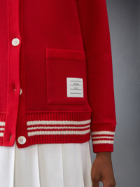 DETAILS & FIT Inspired by Thom Browne's sporty heritage, this classic cardigan will be a staple in your seasonal wardrobe for years to come. Front button closure 2 Front patch pockets Name tag applique Signature striped grosgrain loop tab Model is 5'10" (178 cm), wearing size 40 100% Cotton Made in Italy FJT372A-J0186-600