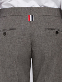 DETAILS & FIT Low-rise skinny trouser in medium grey 2-ply wool fresco. French fly, jetted back pockets. Signature striped grosgrain loop tab at back waist. Model is 5'10" (178 cm), wearing size 40 100% Wool Made in Italy FTC025A00473035