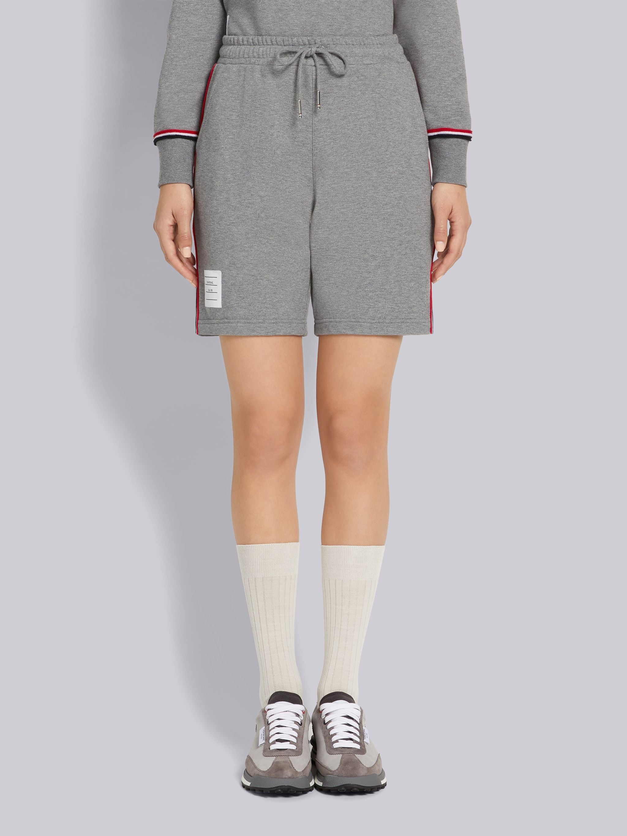 Medium Grey Cotton Loopback Contrast Stripe Framing Mid-thigh Shorts