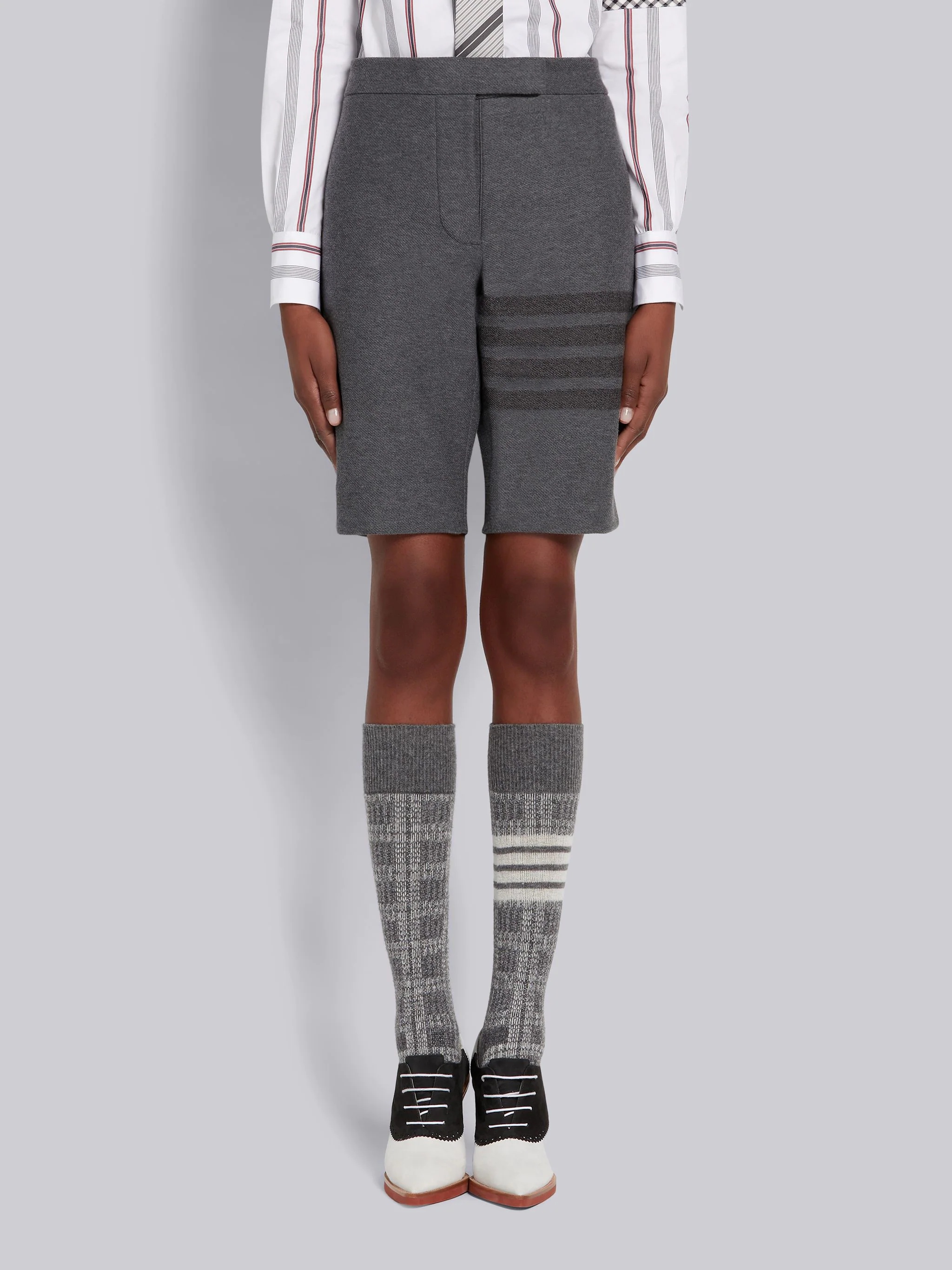 Medium Grey Double Face Tech Twill Tonal 4-Bar Bermuda Shorts