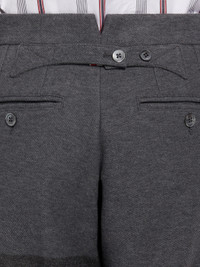 DETAILS & FIT Bermuda shorts in medium grey double face technical twill with tonal 4-bar stripe detail at left thigh and buttoned backstrap. Tab closure. Slant side pockets, buttoned back welt pockets. Signature striped grosgrain loop tab at back waist. Model is 5'10" (178 cm), wearing size 40 100% Cotton Made in Italy FJQ058A06772035