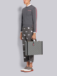 DETAILS & FIT Structured attaché case with leather frame and coated stripe monogram canvas exterior. Double snap-lock closures. Black pebble grain leather top handle with black leather luggage tag. Large interior compartment with multiple slip pockets. Signature striped lining. 46% Cotton, 37% Linen , 12% Polyurethane, 5% Calf Leather Made in Italy MAG314A07557035 - DEPTH: 9.0cm - HANDLE: 6.5cm - HEIGHT: 32.5cm - WIDTH: 44.0cm