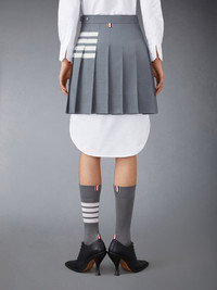 Medium Grey Plain Weave Mini Pleated 4-Bar Skirt