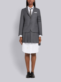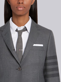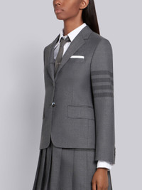 DETAILS & FIT Classic sport coat in medium grey school uniform step twill with woven tonal 4-bar stripe detail at left sleeve. 2-button front closure, notched lapels. 2 flap front pockets, single chest pocket. Buttoned cuffs with signature striped trim. Double vented back hem. Striped lining with name tag at interior pocket. Signature striped grosgrain loop tab at back of neck. Classic - Fit 1. Model is 5'10" (178 cm), wearing size 40 100% Silk Lining 50% Polyester, 50% Wool Made in Italy FBC521A04346035