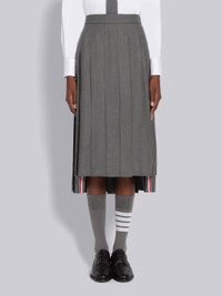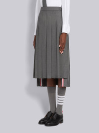 Medium Grey Super 120's Twill Dropped Back Below-the-knee Pleated Skirt