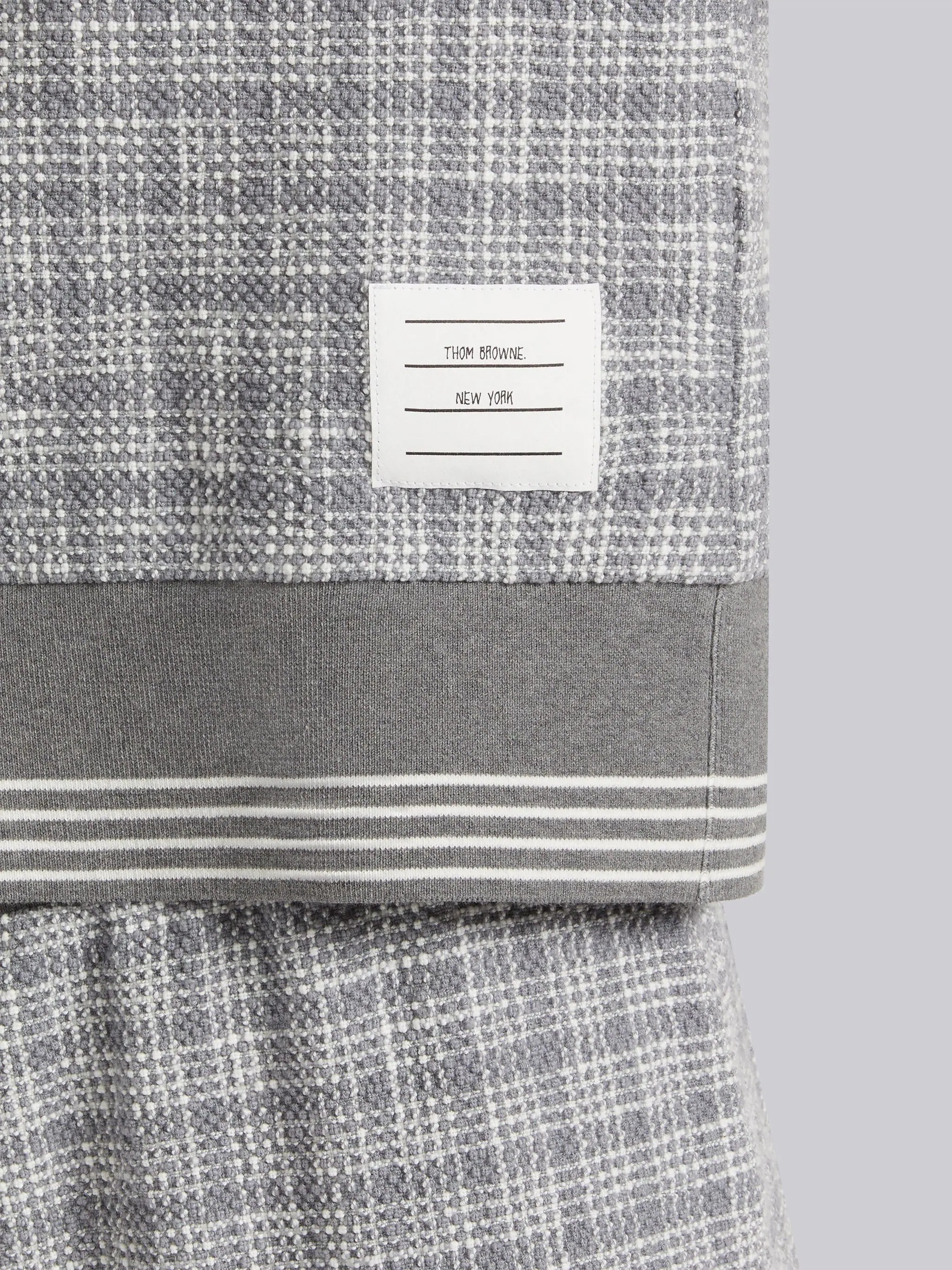 Medium Grey Textured Micro 4-Bar Check Cotton Tweed Rib Cuff Polo