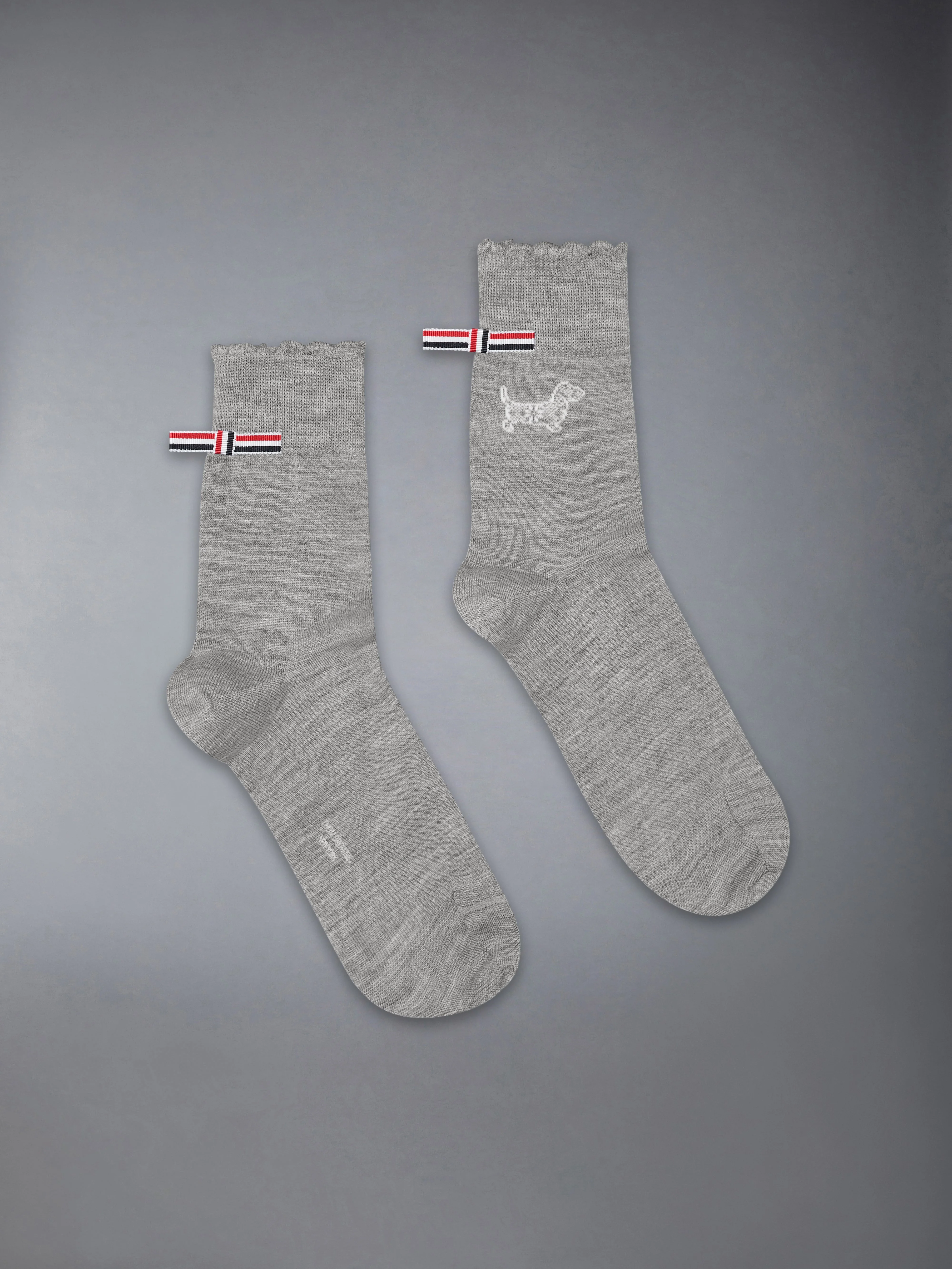 Hector returns in seasonal form, reimagined in a jacquard knit that nods to classic holiday sweater patterns. These crew-length socks are crafted in soft merino wool and finished with scalloped cuffs, bringing warmth and playfulness to winter dressing. Crew length Scalloped ribbed cuff Hector holiday jacquard motif Logo printed at soles Signature striped grosgrain tab 86% Virgin Wool, 13% Polyamide, 1%Elastan Made in Italy FAS239A-Y1020-055