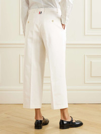 EDITORS'NOTES Thom Browne’s pants have been made in Italy from crisp cotton-twill with a pleated, mid-rise waist. They’re cropped to hit above the ankles and have relaxed wide legs. Style yours with sneakers, boots and flats alike. SIZE & FIT - Fits true to size, take your normal size - Mid-rise, cut for a wide-leg fit - Cropped length - Mid-weight, non-stretchy fabric - Model is 180cm/ 5'11" and is wearing an IT 40 DETAILS & CARE - White cotton-twill - Concealed snap and zip fastening on front - 100% cotton