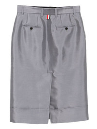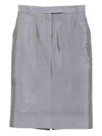 knee length beltloop sack skirt Highlights - Steel grey - Concealed front button, hook and zip fastening - Rear slit Made in Italy Composition Outer: Wool 58%, Silk 42% Lining: Silk 100%