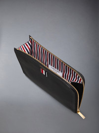 Fill this folio with your utmost essentials and slip it into your everyday bag. Access your items with ease. Brass zip closure Gold foil printed logo at entry Tricolor stripe lining Signature striped grosgrain loop tab 100% Calf Full Grain Leather Lining: 68% Polyester Recycled, 27% Polyester, 5% Acrylic Made in Italy MAC072A-L0090-001