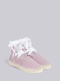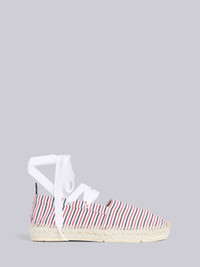 Multicolor Cotton Seersucker Stripe Removable Ankle Tie Espadrille
