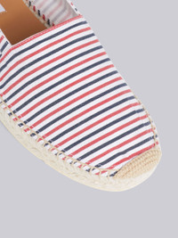 DETAILS & FIT Multicolor Stripe Espadrille Cotton Seersucker Removable Ankle Tie Rubber Sole Signature Grosgrain Loop Tab NOTES 70% Cotton, 30% Rubber Made in Spain FFD092A06127960