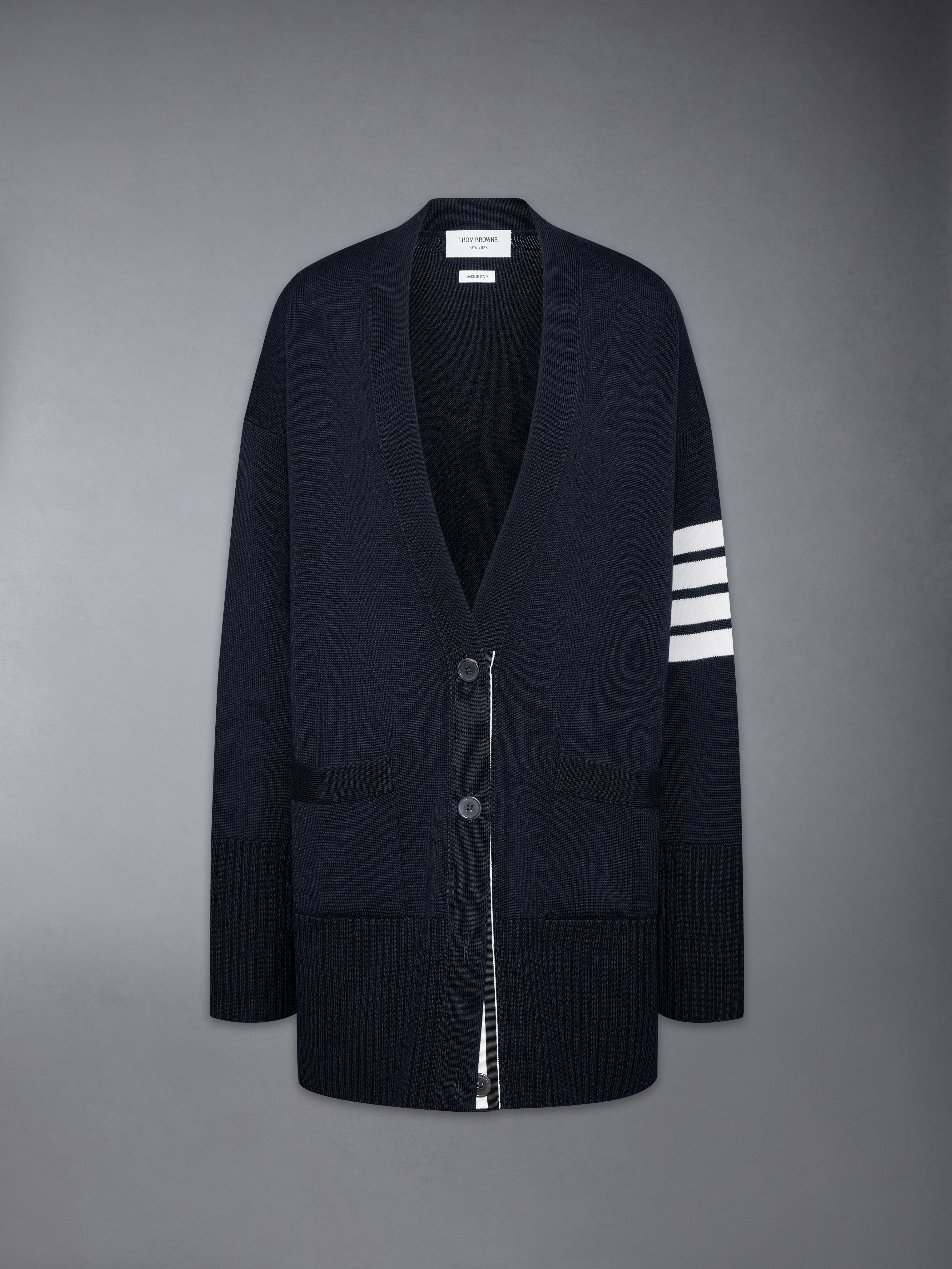 FINE MERINO WOOL 4-BAR EXAGGERATED FIT CARDIGAN