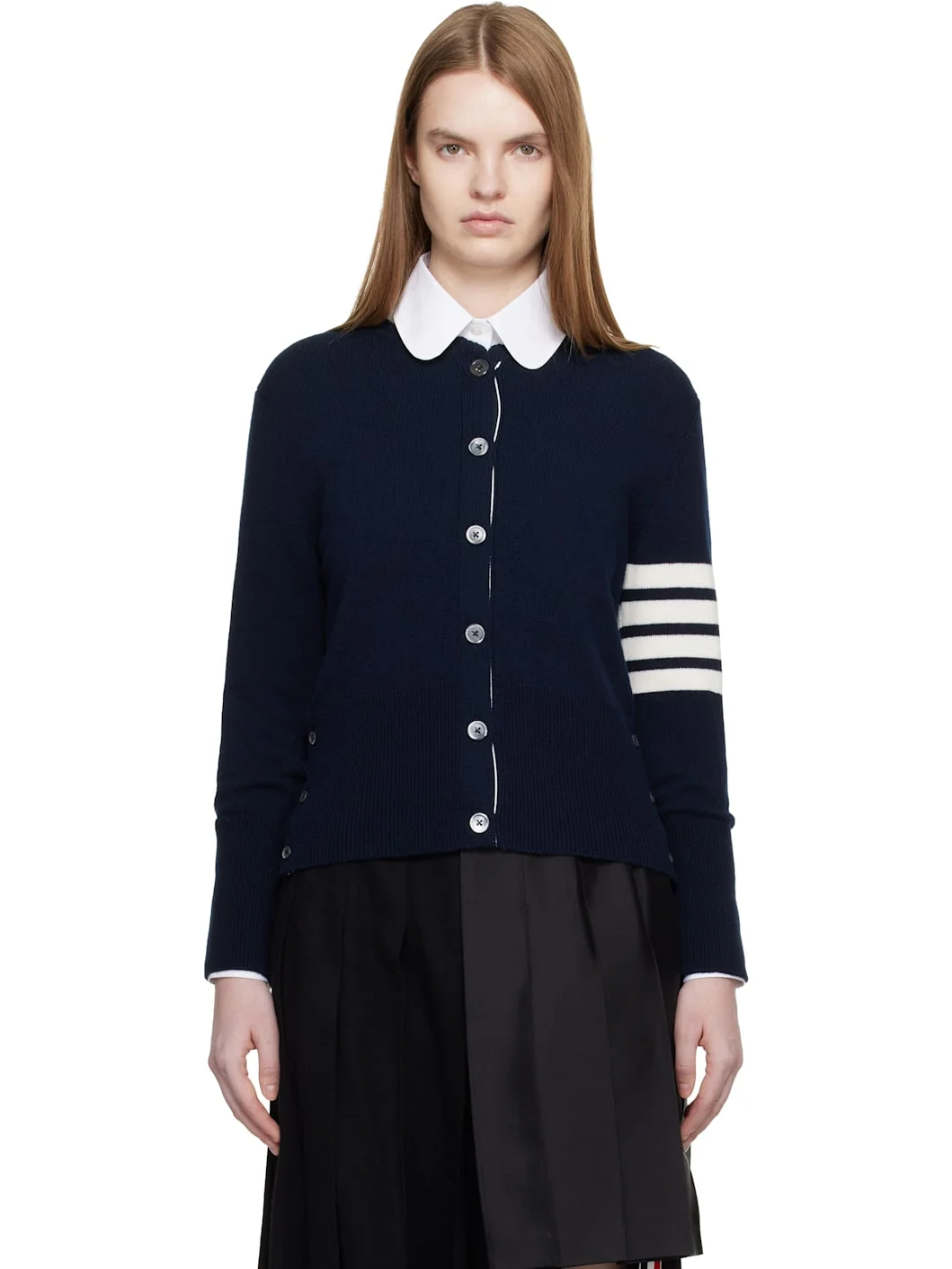 Navy Jersey Intarsia Classic Fit 4-Bar Cardigan