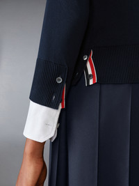 DETAILS & FIT A silhouette that has stood the test of time, this luxe pullover is adorned with signature Thom Browne emblems throughout and tailored to perfection. Layer it over any of our signature dress shirts. 4-bar detailing Buttoned side vents with signature striped grosgrain trim Buttoned cuffs with signature striped grosgrain trim Signature striped grosgrain loop tab Model is 5'10" (178 cm), wearing size 40 100% Cotton Made in Italy FKA487A-Y3036-415
