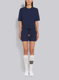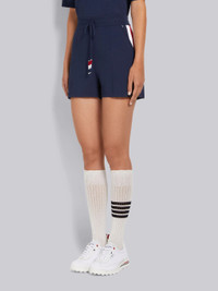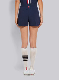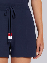 Navy Stretch Viscose Intarsia Side Stripe Pintuck Mid-thigh Shorts
